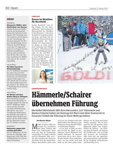 Die beiden Montafoner SBX-Asse Alessandro „Izzi“ Hämmerle und Markus Schairer haben am Sonntag mit Platz zwei beim Teamevent in Erzurum (Türkei) die Führung im Team-Weltcup erobert.