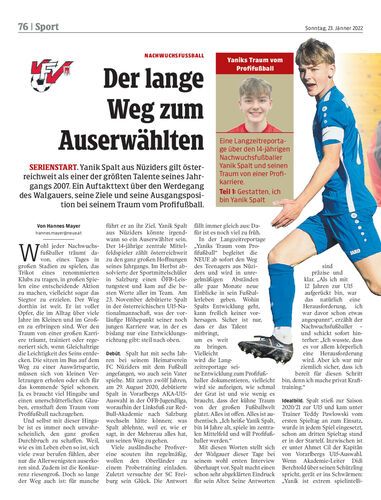 Serienstart. Yanik Spalt aus Nüziders gilt österreichweit als einer der größten Talente seines Jahrgangs 2007. Ein Auftakttext über den Werdegang des Walgauers, seine Ziele und seine Ausgangsposition bei seinem Traum vom Profifußball.