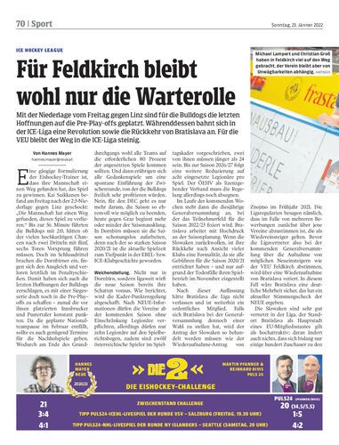 Mit der Niederlage vom Freitag gegen Linz sind für die Bulldogs die letzten Hoffnungen auf die Pre-Play-offs geplatzt. Währenddessen bahnt sich in der ICE-Liga eine Revolution sowie die Rückkehr von Bratislava an. Für die VEU bleibt der Weg in die ICE-Liga steinig.