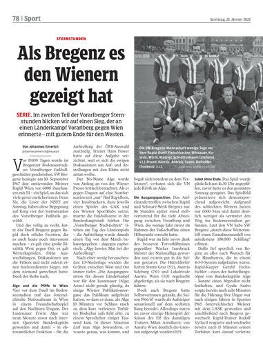 Serie. Im zweiten Teil der Vorarlberger Sternstunden blicken wir auf einen Sieg, der an einen Länderkampf Vorarlberg gegen Wien erinnerte – mit gutem Ende für den Westen.