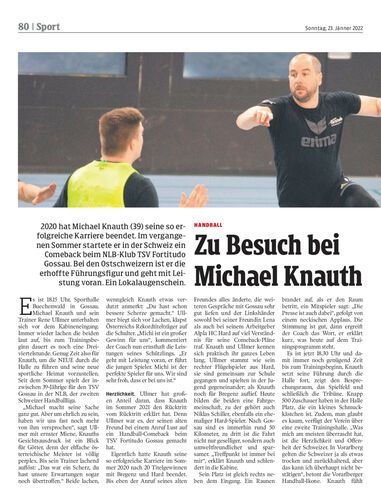 2020 hat Michael Knauth (39) seine so erfolgreiche Karriere beendet. Im vergangenen Sommer startete er in der Schweiz ein Comeback beim NLB-Klub TSV Fortitudo Gossau. Bei den Ostschweizern ist er die erhoffte Führungsfigur und geht mit Leistung voran. Ein Lokalaugenschein.