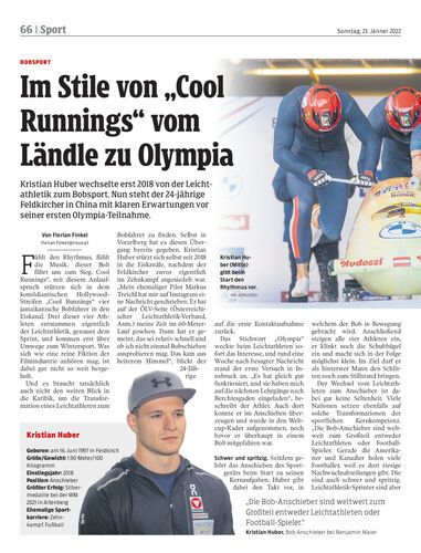 Kristian Huber wechselte erst 2018 von der Leichtathletik zum Bobsport. Nun steht der 24-jährige Feldkircher in China mit klaren Erwartungen vor seiner ersten Olympia-Teilnahme.