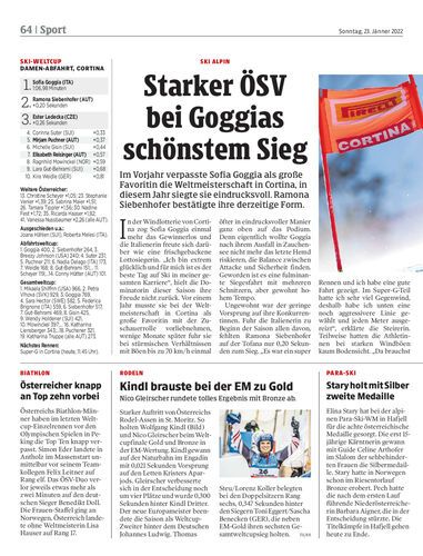 Im Vorjahr verpasste Sofia Goggia als große Favoritin die Weltmeisterschaft in Cortina, in diesem Jahr siegte sie eindrucksvoll. Ramona Siebenhofer bestätigte ihre derzeitige Form.