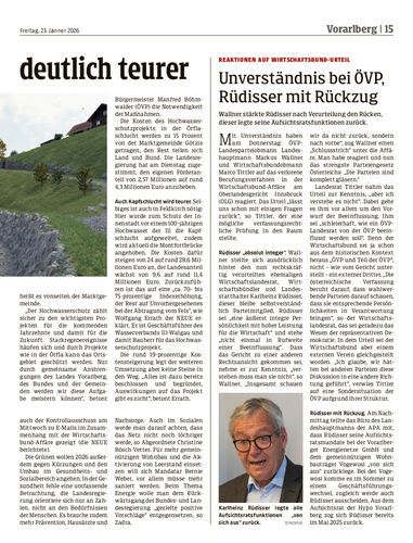 Wallner stärkte Rüdisser nach Verurteilung den Rücken, dieser legte seine Aufsichtsratsfunktionen zurück.