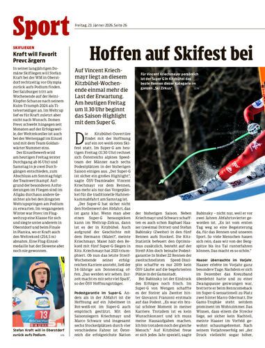 Auf Vincent Kriechmayr liegt an diesem Kitzbühel-Wochenende einmal mehr die Last der Erwartung. Am heutigen Freitag um 11.30 Uhr beginnt das Saison-Highlight mit dem Super G.