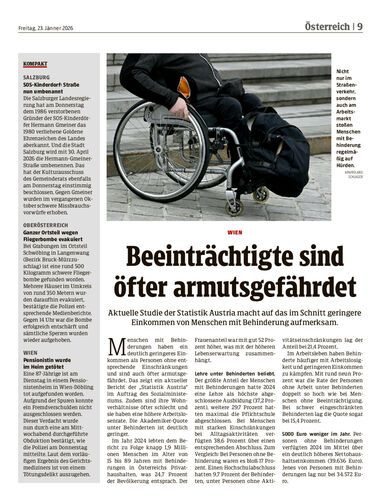 Aktuelle Studie der Statistik Austria macht auf das im Schnitt geringere Einkommen von Menschen mit Behinderung aufmerksam.
