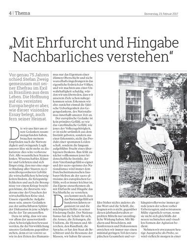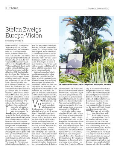 Vor genau 75 Jahren schied Stefan Zweig gemeinsam mit seiner Ehefrau im Exil in Brasilien aus dem Leben. Die Hoffnung auf ein vereintes Europa hegte er aber, wie dieser visionäre Essay belegt, auch fern seiner Heimat.