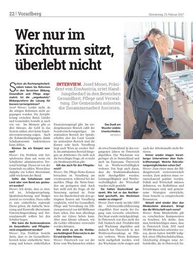Interview. Josef Moser, Präsident von EcoAustria, ortet Handlungsbedarf in den Bereichen Gesundheit, Pflege und Verwaltung. Die Gemeinden müssten die Zusammenarbeit forcieren.