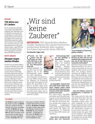 ÖSV-Sportdirektor Markus Gandler analysiert die Lage bei Österreichs nordischem Stiefkind, dem Langlauf. Der Fokus liegt auf der Heim-WM 2019. Von Alexander Tagger, Lahti