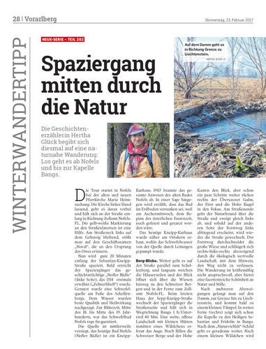 Die Geschichtenerzählerin Hertha Glück begibt sich diesmal auf eine naturnahe Wanderung: Los geht es ab Nofels und bis zur Kapelle Bangs.