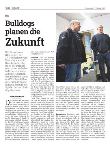 Die Saison vom DEC ist seit der 3:4-Niederlage vom Dienstagabend in Graz beendet. Der Blick der Dornbirner richtet sich deshalb bereits in die Zukunft. Schon in den nächsten Tagen und Wochen fallen die ersten Entscheidungen, welche der Spieler bei den Bulldogs bleiben.