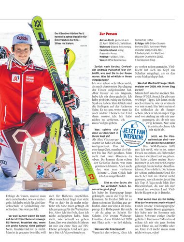 Vizeweltmeister Adrian Pertl über die Anfänge, Zeitpunkte des Zweifels, die Zeit vor dem Start in den zweiten Lauf des WM-Torlaufs in Cortina und die nähere Zukunft. Von Michael Schuen