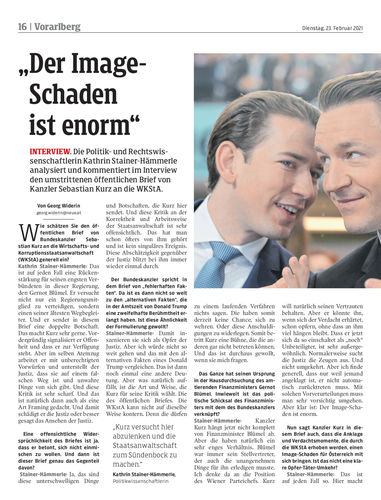 Interview. Die Politik- und Rechtswissenschaftlerin Kathrin Stainer-Hämmerle analysiert und kommentiert im Interview den umstrittenen öffentlichen Brief von Kanzler Sebastian Kurz an die WKStA.