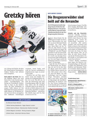 Der EC Bregenzerwald empfängt heute (19.30 Uhr) die Wipptal Broncos. Vor genau einem Monat zog man beim Tabellennachbarn in der Verlängerung den Kürzeren.