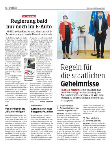 Ab 2022 sollen Kanzler und Minister auf E-Autos umsteigen, so die Umweltministerin.