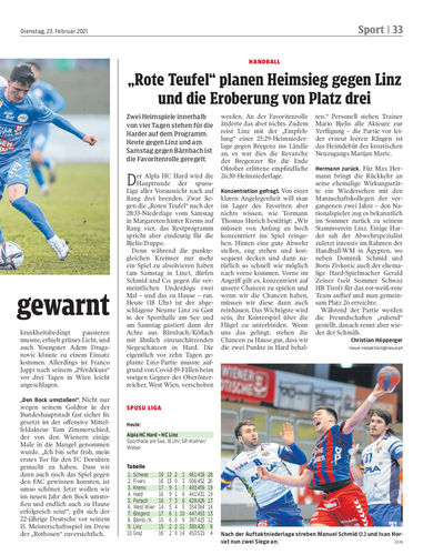Zwei Heimspiele innerhalb von vier Tagen stehen für die Harder auf dem Programm. Heute gegen Linz und am Samstag gegen Bärnbach ist die Favoritenrolle geregelt.