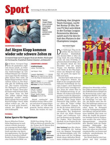 Salzburg, das jüngste Team Europas, sucht bei Roma (21 Uhr, Servus TV, Sky) sein Glück in der Europa League. Österreichs Meister spielt auch für den Erhalt des Platzes in der Champions League.