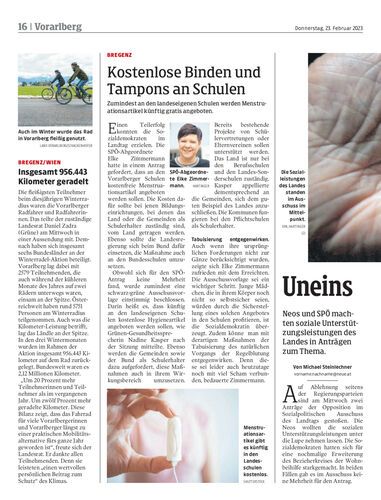 Zumindest an den landeseigenen Schulen werden Menstruationsartikel künftig gratis angeboten.