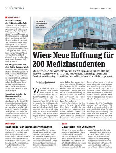Studierende an der Wiener Privatuni, die die Zulassung für das Medizin-Masterstudium verloren hat, sind verzweifelt, man hänge in der Luft. Das Rektorat beruhigt, staatliche Unis sollen helfen, eine Klinik ist geplant.