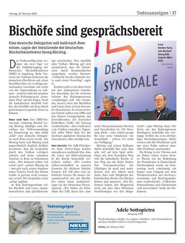 Eine deutsche Delegation soll bald nach Rom reisen, sagte der Vorsitzende der Deutschen Bischofskonferenz Georg Bätzing.