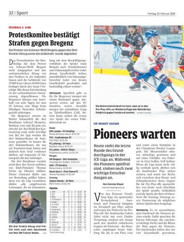 Der Protest von Schwarz-Weiß Bregenz gegen den Drei-Punkte-Abzug sowie der Geldstrafe wurde abgelehnt.