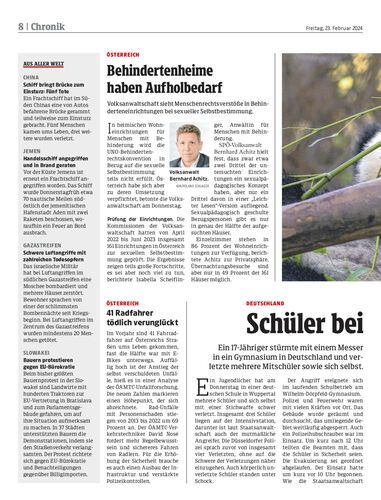 Volksanwaltschaft sieht Menschenrechtsverstöße in Behinderteneinrichtungen bei sexueller Selbstbestimmung.