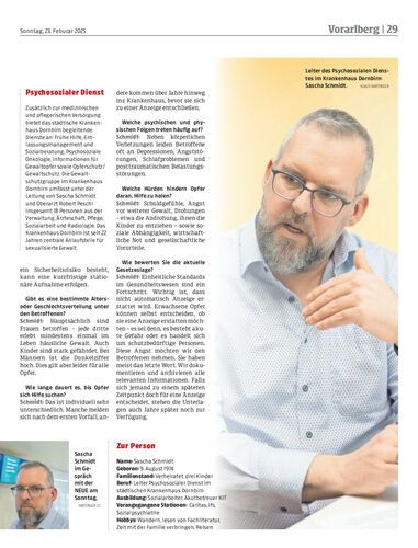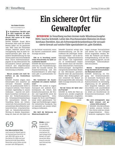 Interview. In Vorarlberg suchen immer mehr Missbrauchsopfer Hilfe. Sascha Schmidt, Leiter des Psychosozialen Dienstes im Krankenhaus Dornbirn, das als Schwerpunktkrankenhaus für sexualisierte Gewalt auf solche Fälle spezialisiert ist, gibt Einblick.