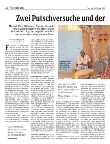 Michael König (49) war im Zuge der Entwicklungszusammenarbeit drei Jahre lang in Burkina Faso tätig. Seit ungefähr zwei Wochen ist er wieder zurück in Vorarlberg.