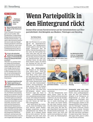 Immer öfter setzen Parteivertreter auf der Gemeindeebene auf Überparteilichkeit. Drei Beispiele aus Bludenz, Thüringen und Nenzing.