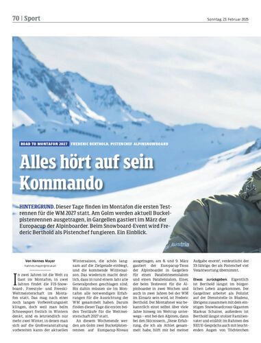 Hintergrund. Dieser Tage finden im Montafon die ersten Testrennen für die WM 2027 statt. Am Golm werden aktuell Buckelpistenrennen ausgetragen, in Gargellen gastiert im März der Europacup der Alpinboarder. Beim Snowboard-Event wird Frederic Berthold als Pistenchef fungieren. Ein Einblick.