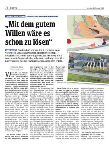 Interview. Der Geschäftsführer des Olympiazentrum Vorarlberg, Sebastian Manhart, erklärt im zweiten Gesprächsteil, woran der dringende Ausbau des Olympiazentrums in Dornbirn bisher scheitert – und zeigt eine Alternative auf, die aus der Planungssackgasse führen würde.