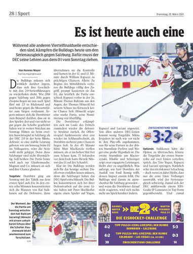 Während alle anderen Viertelfinalduelle entschieden sind, kämpfen die Bulldogs heute um den Serienausgleich gegen Salzburg. Dafür muss der DEC seine Lehren aus dem 0:1 vom Sonntag ziehen.