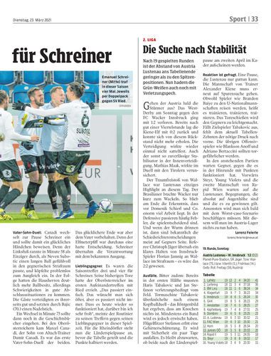 Als Einwechselspieler besorgte Emanuel Schreiner beide Treffer beim 2:1-Heimerfolg über die SV Ried. Zum Abschluss des Grunddurchgangs feierte Altach den dritten Sieg im vierten Spiel unter Trainer Damir Canadi.