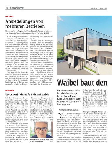 Bis Herbst sollen beim Berufsbekleidungshersteller in Klaus rund 1,3 Millionen Euro in einen Ausbau investiert werden.