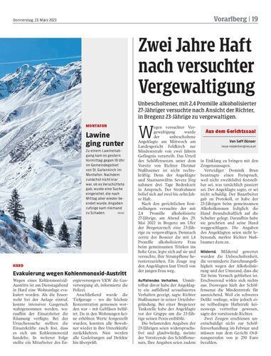Unbescholtener, mit 2,4 Promille alkoholisierter 27-Jähriger versuchte nach Ansicht der Richter, in Bregenz 23-Jährige zu vergewaltigen.