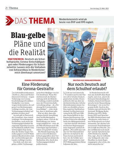 Faktencheck. Deutsch als Schulhofsprache, Corona-Entschädigungen oder Förderungen für Schnitzelwirte: Lassen sich die Vorhaben von Schwarzblau in Niederösterreich überhaupt umsetzen?