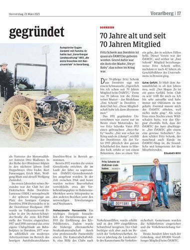 Fritz Schenk aus Dornbirn ist quasi als ÖAMTCler geboren worden. Grund dafür war ein Auto der Marke „Steyr-Baby“, das schon im Krieg war.