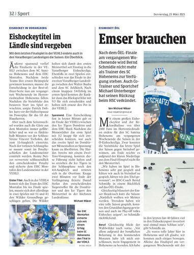 Nach dem ÖEL-Finale am vergangenen Wochenende wird Bernd Schmidle nicht mehr als Trainer des SC Hohenems zur Verfügung stehen. Auch Co-Trainer und Sportchef Michael Unterberger hat seinen Rückzug beim HSC verkündet.