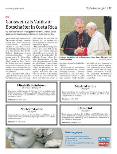 Der frühere Vertraute von Papst Benedikt XVI. soll laut einem Medienbericht apostolischer Nuntius in Costa Rica werden.