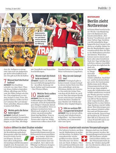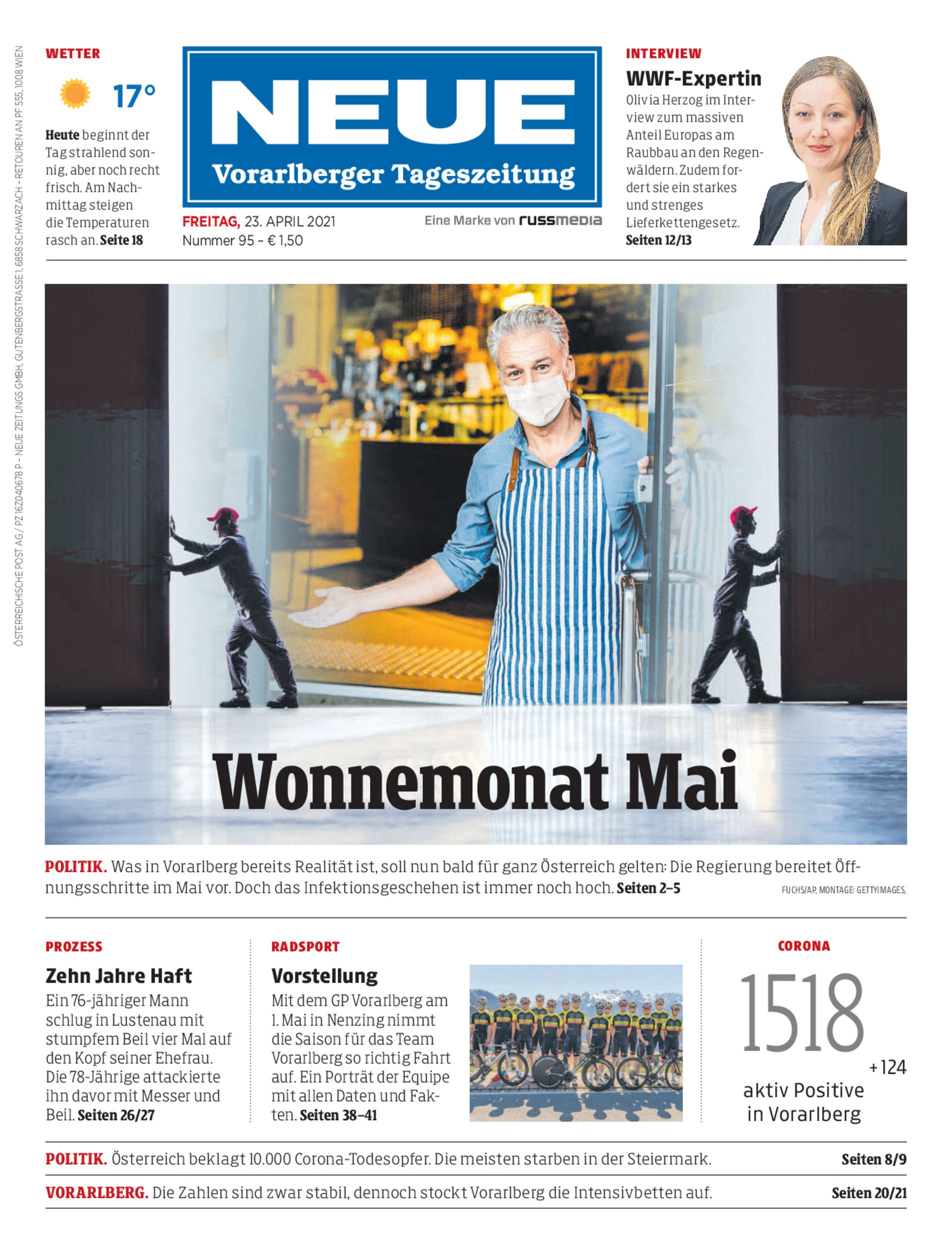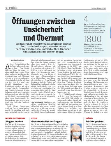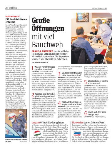 Politik. Was in Vorarlberg bereits Realität ist, soll nun bald für ganz Österreich gelten: Die Regierung bereitet Öffnungsschritte im Mai vor. Doch das Infektionsgeschehen ist immer noch hoch. Seiten 2–5 FUCHS/AP, MONTAGE: GETTYIMAGES,
