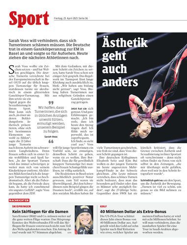 Sarah Voss will verhindern, dass sich Turnerinnen schämen müssen. Die Deutsche trat in einem Ganzkörperanzug zur EM in Basel an und sorgte so für Aufsehen. Heute ziehen die nächsten Athletinnen nach.