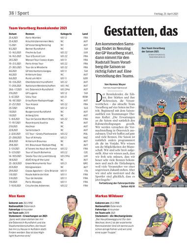 Am kommenden Samstag findet in Nenzing der GP Vorarlberg statt, dann nimmt für den Radstall Team Vorarlberg die Saison so richtig Fahrt auf. Eine Vorstellung des Teams.