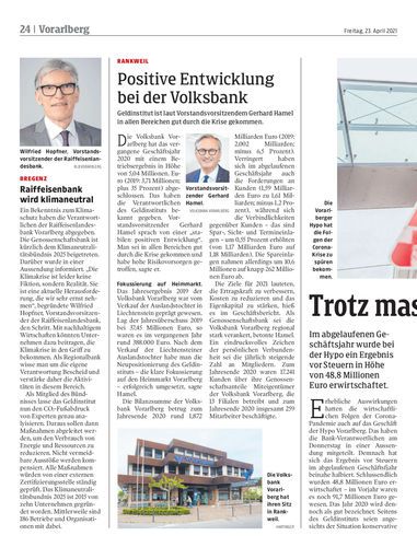 Geldinstitut ist laut Vorstandsvorsitzendem Gerhard Hamel in allen Bereichen gut durch die Krise gekommen.