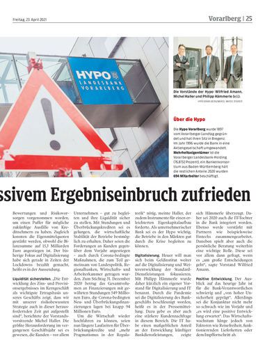 Im abgelaufenen Geschäftsjahr wurde bei der Hypo ein Ergebnis vor Steuern in Höhe von 48,8 Millionen Euro erwirtschaftet.