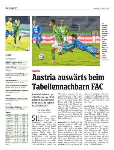 Austria Lustenau gastiert heute um 18:30 Uhr mit Rückenwind beim Ex-Klub von Roman Ellensohn.