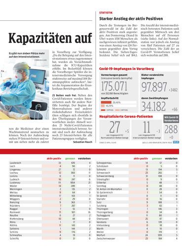 Vorarlberg erhöht die Anzahl der Intensivbetten von 52 auf 59. Zahl der Intensivpatienten in den vergangenen zwei Wochen aber dennoch stabil.