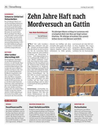 76-jähriger Mann schlug in Lustenau mit stumpfem Beil vier Mal auf Kopf seiner Ehefrau. 78-Jährige attackiert ihn unmittelbar davor mit Messer und Beil.