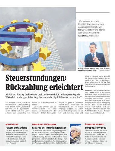 Ab Juli auf Antrag drei Monate praktisch ohne Rückzahlungen möglich. WKÖ sieht wichtigen Teilerfolg, der sinnvolle Liquiditätsstütze verschafft.