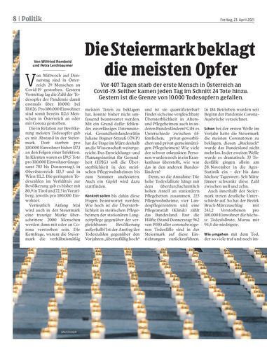 Vor 407 Tagen starb der erste Mensch in Österreich an Covid-19. Seither kamen jeden Tag im Schnitt 24 Tote hinzu. Gestern ist die Grenze von 10.000 Todesopfern gefallen.