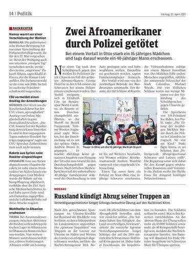 Bei einem Vorfall in Ohio starb ein 16-jähriges Mädchen und tags darauf wurde ein 40-jähriger Mann erschossen.